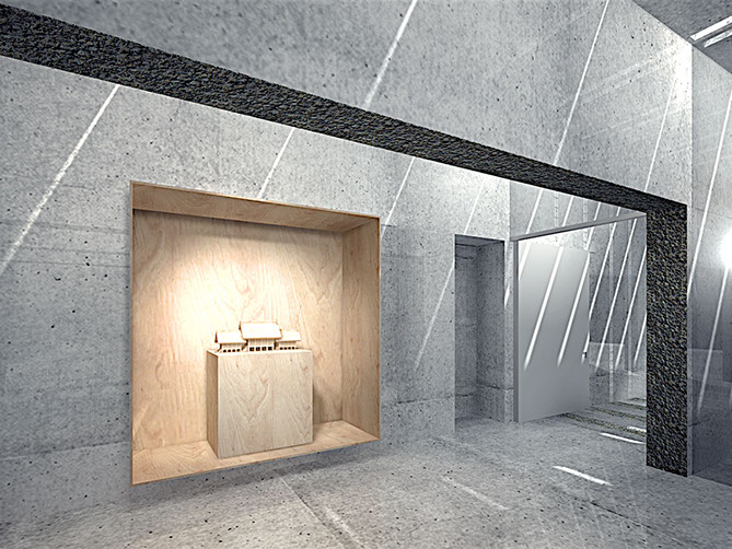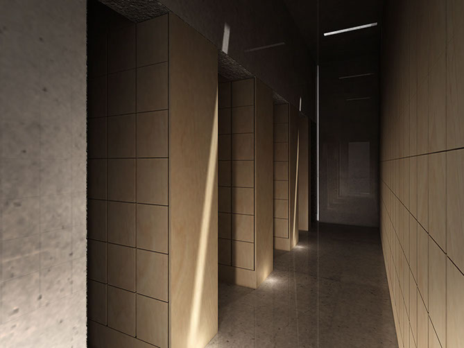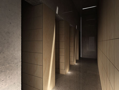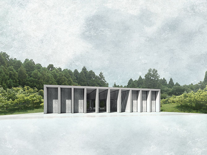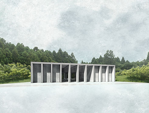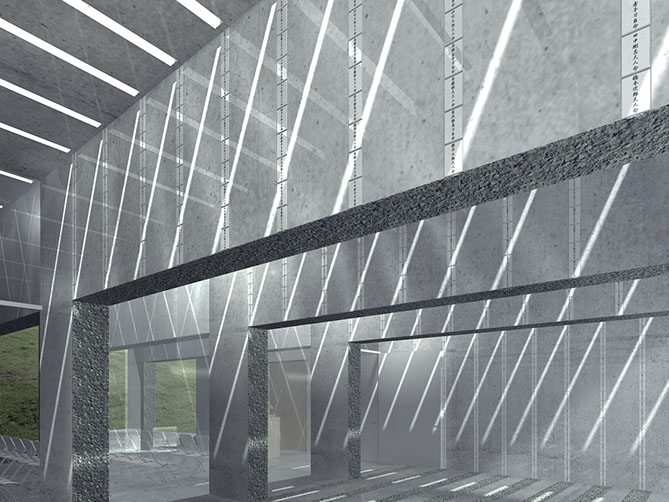 11枚のコンクリート壁によって構成された、500人の納骨堂。朝の法事が行われる10時に、屋根に設けた無数のスリットから光の帯が現れ、正午には壁に刻まれた500人の名前に重なる。光の帯は午後の法事が行われる14時まで差し込み、その後細くなりながら消えてゆくよう設計されています。