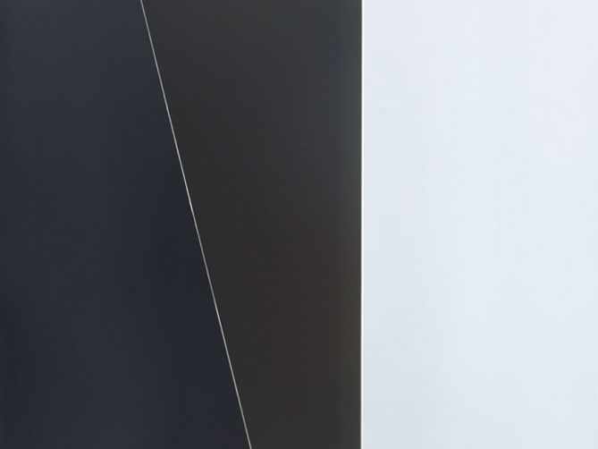 写真家夫妻のためにデザインしたフォトフレームにもなるパーティション。1.2mm厚の黒皮鉄を折り込むように貼り合わせる事で、鉄の素材感を活かしながらも、軽やかで、かつ自立できる安定性を持たせました。
