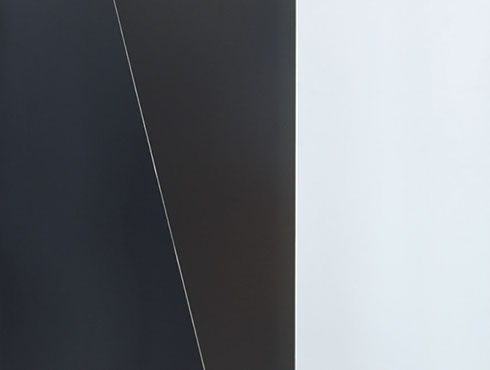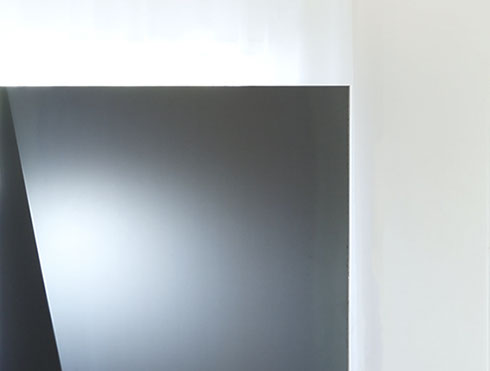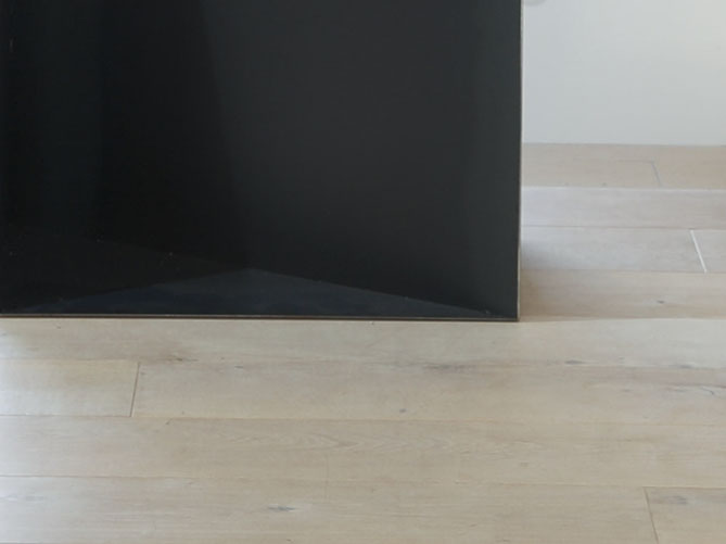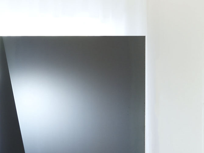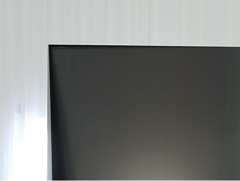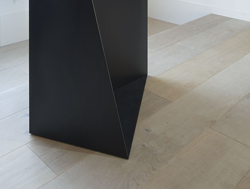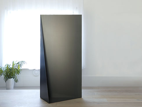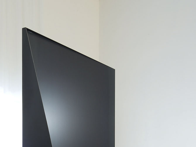 写真家夫妻のためにデザインしたフォトフレームにもなるパーティション。1.2mm厚の黒皮鉄を折り込むように貼り合わせる事で、鉄の素材感を活かしながらも、軽やかで、かつ自立できる安定性を持たせました。