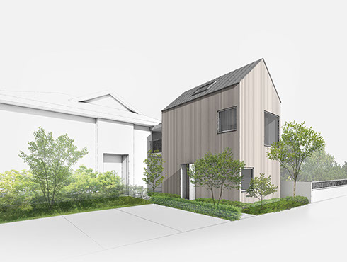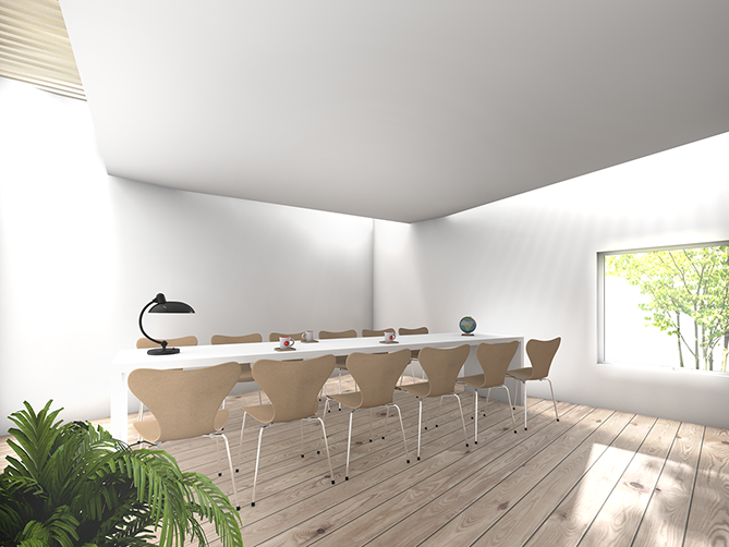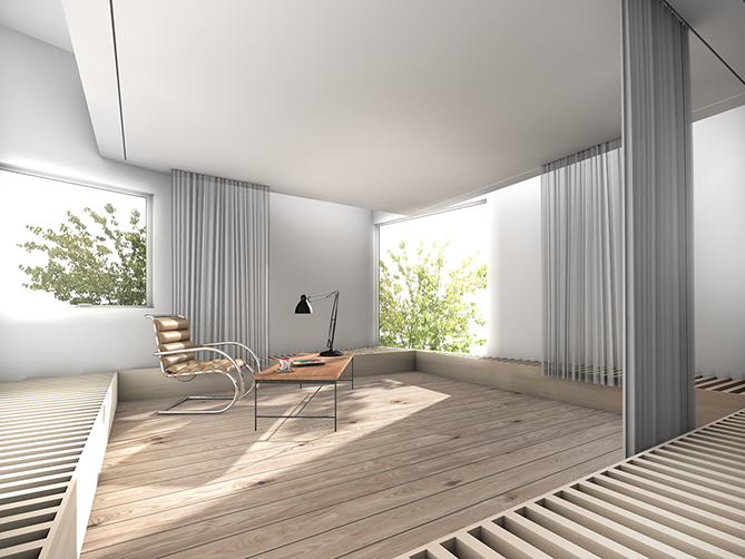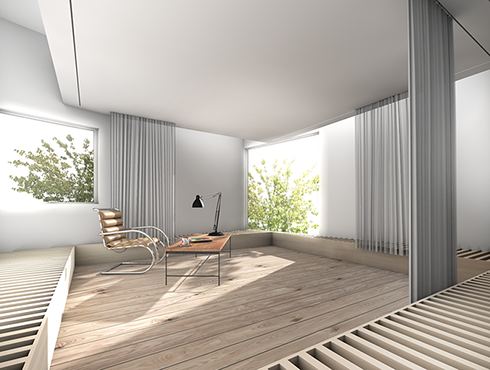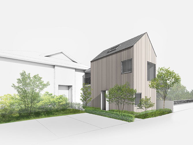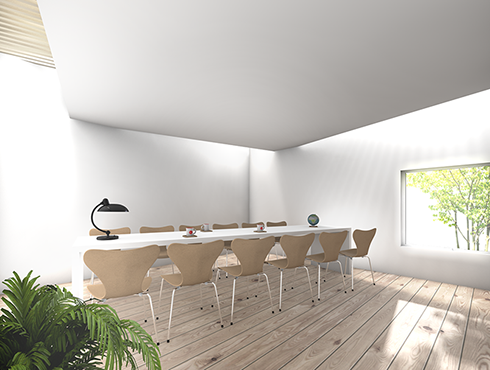 気の合う仲間が集うための工房カフェ。2階には古い活版印刷機による出版物の製作工房、1階には小さなカフェ。2階の四辺に設けられたすのこ床からは、工房の音や気配が下のカフェに伝わるよう設計されています。